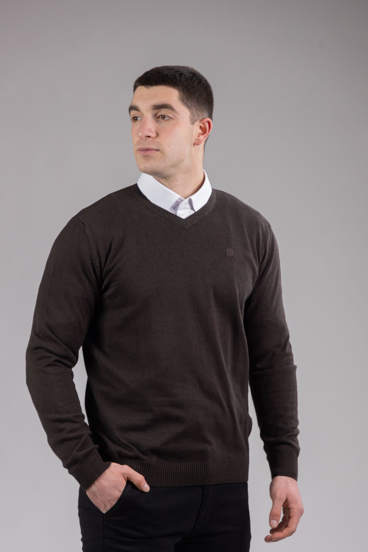 Pamučni džemper V izrez savršen je izbor za sve koji vole elegantan i uredan stil. Odlično se kombinuje preko košulje jer V izrez prirodno naglašava kragnu i daje sofisticiran izgled bez napora. Napravljen od 100% pamuka, pruža mekoću, prozračnost i dugotrajnu udobnost. Idealan je za posao, školu ili svakodnevne kombinacije, a njegov minimalistički dizajn lako se uklapa u svaki garderober.