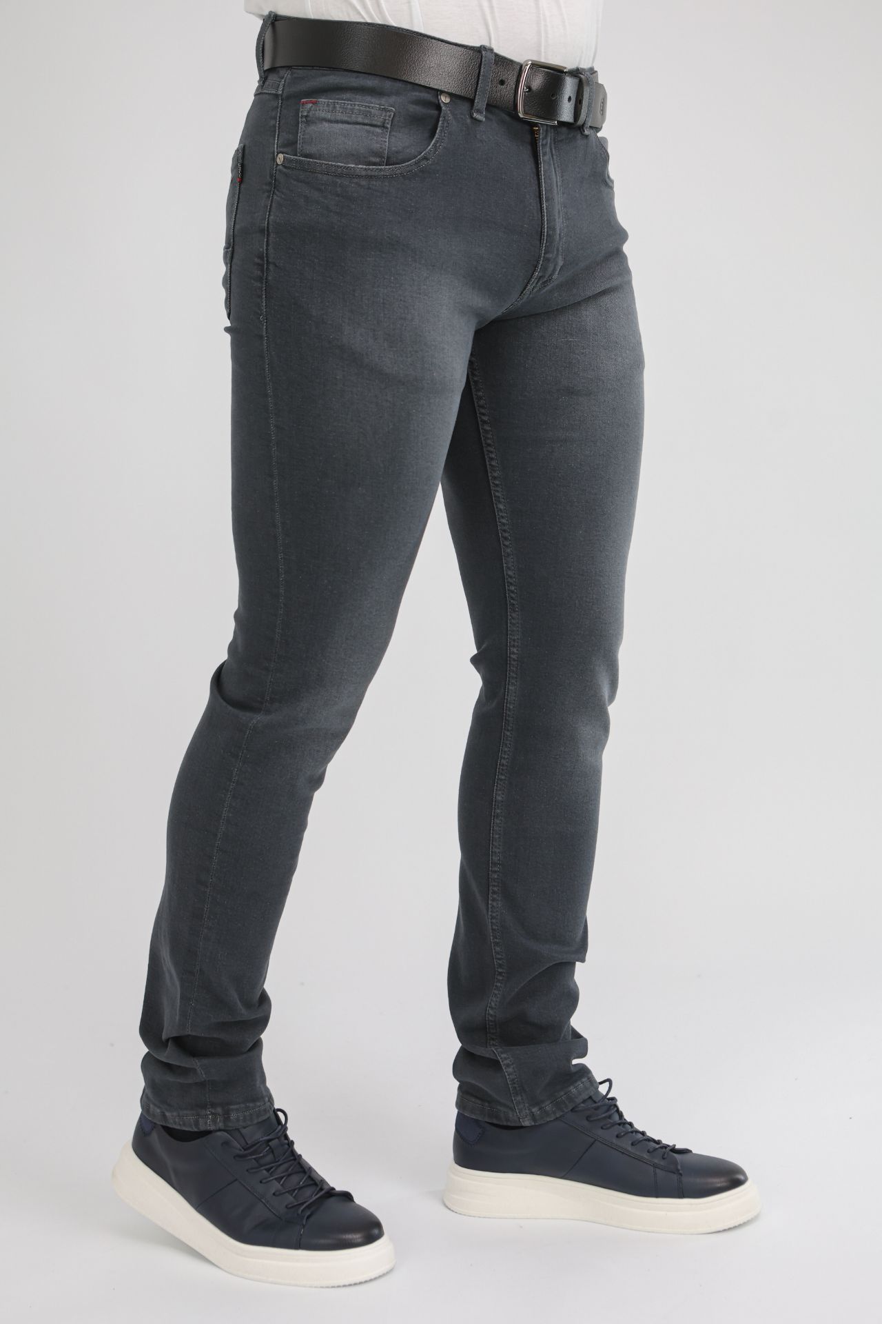 Ove Regular Slim teksas pantalone u tamno sivoj nijansi pružaju idealan odnos između udobnosti klasičnog kroja i modernog, blago suženog izgleda. Materijal je elastičan i prijatan, omogućava lako kretanje i zadržava formu tokom celog dana, što ih čini odličnim izborom za svakodnevne obaveze i duže nošenje.