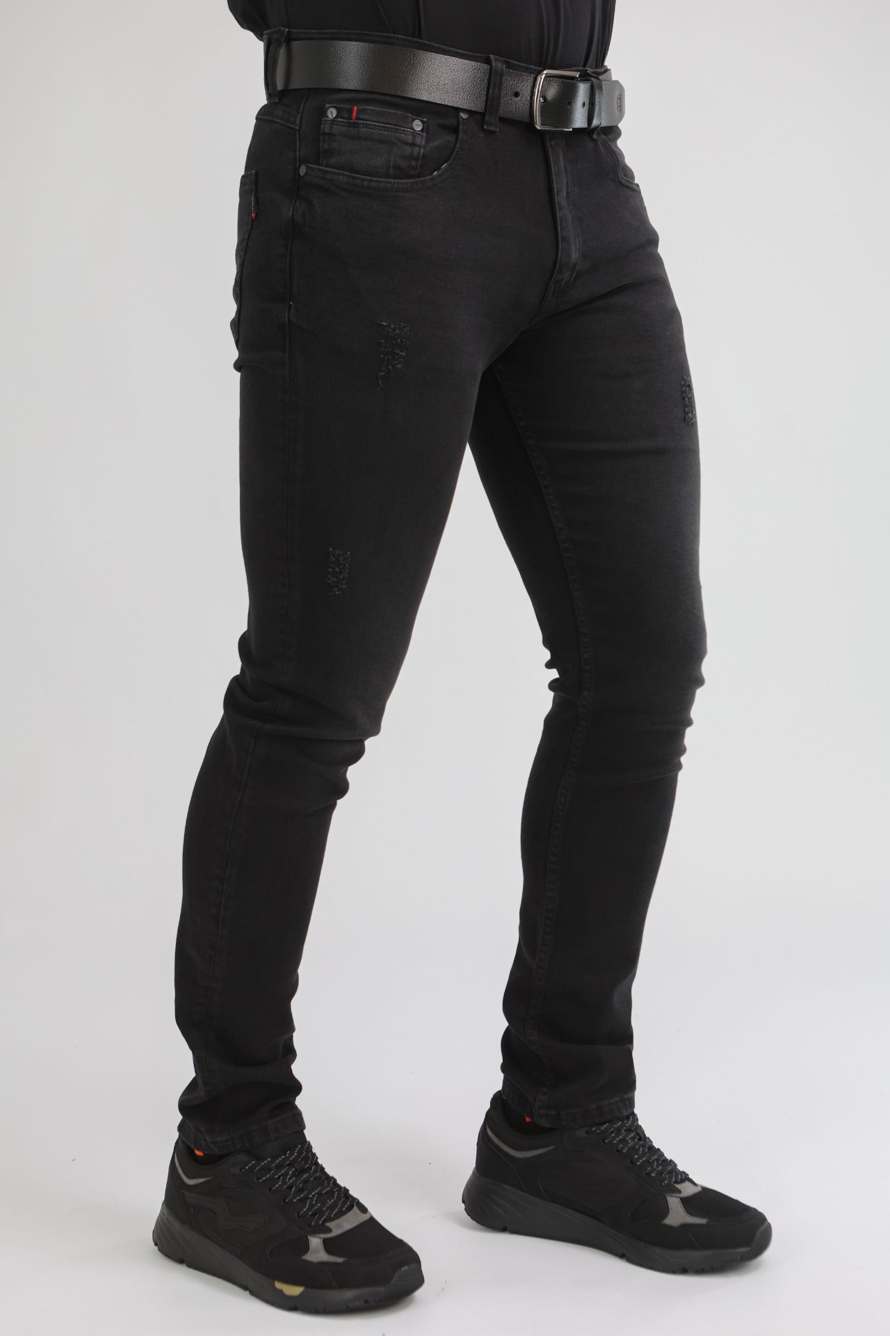 Ove crne slim fit teksas pantalone kombinuju udobnost, čist dizajn i modernu obradu. Kroj je slim fit — ravan u gornjem delu sa postepenim sužavanjem prema članku, što daje uredan i uklopljen izgled bez osećaja stezanja. Materijal je elastičan i prilagodljiv, omogućava lako kretanje i stabilno zadržava formu tokom nošenja.